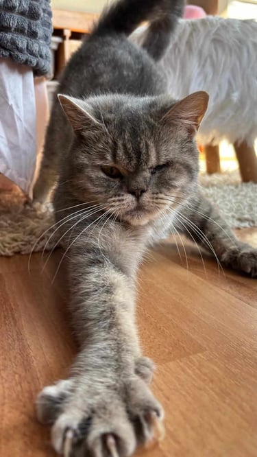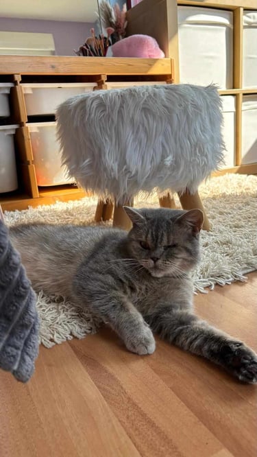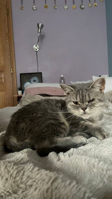 Pirate est arrivée chez nous déjà borgne : c’est une minette hyper sensible, hyper attachante mais très sélective. Elle a sa bipède préférée (une de mes filles) et ne se sent bien qu’avec elle et dans sa chambre. Nul besoin pour elle d’arpenter la maison : un bon lit, des tapis, des petites souris et beaucoup à manger lui suffisent.